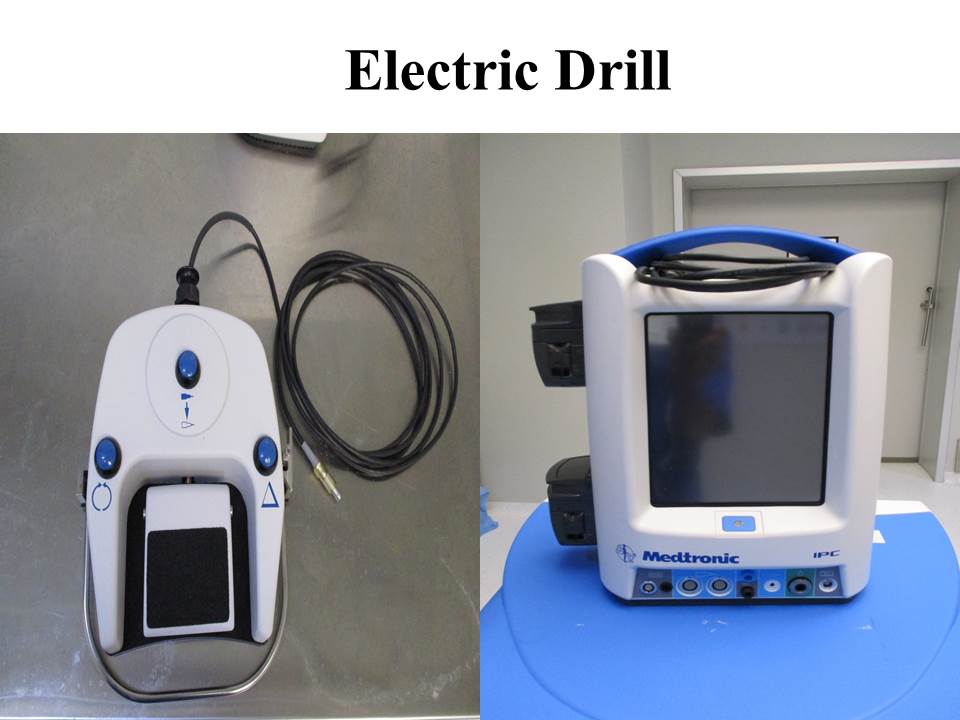 The electric drill used electrical energy into the high-speed drill. E.g Medtronic Aesculap NSK drill system Manman