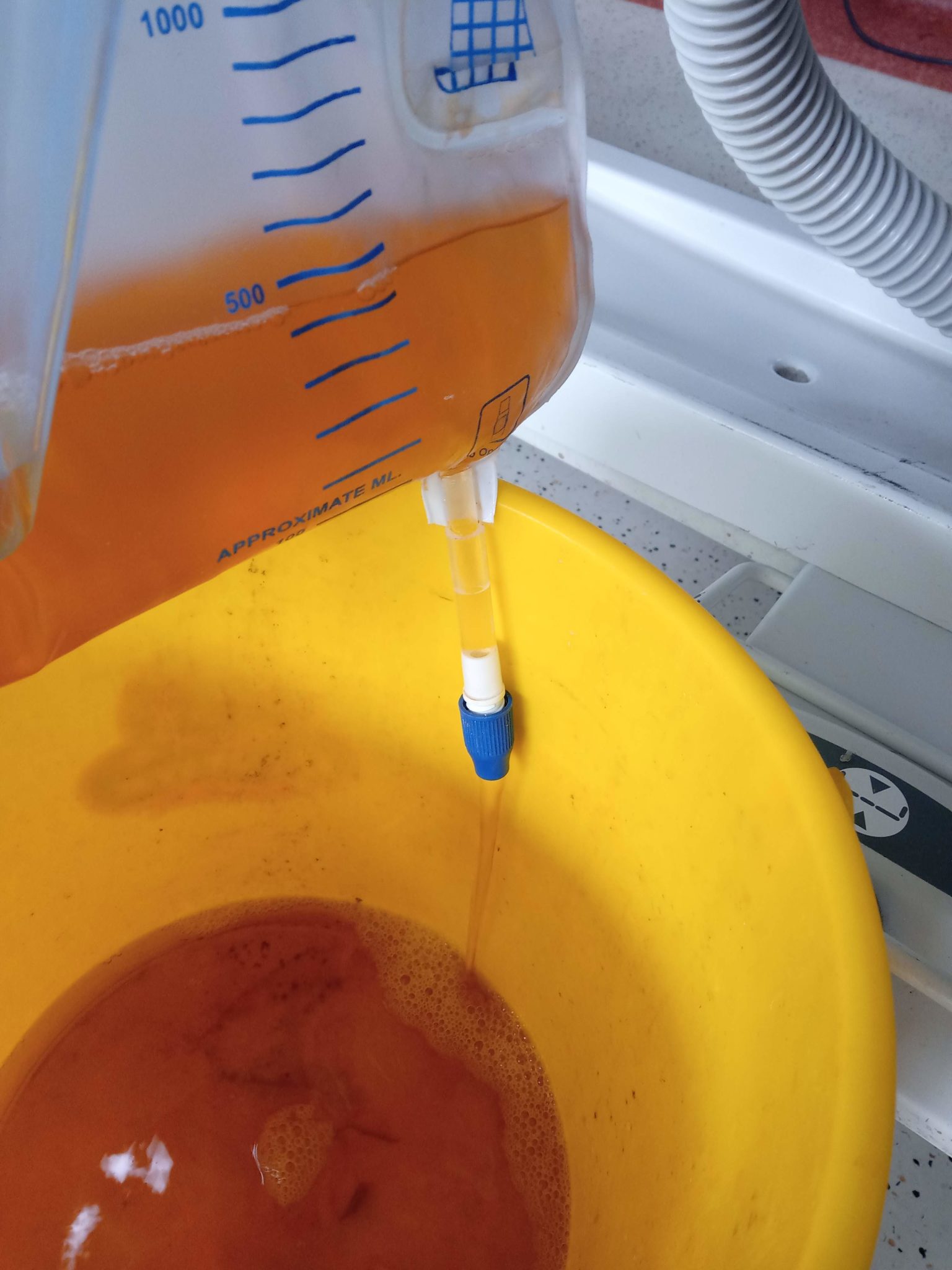 After the urine drained from the collection bag close the knob to avoid leakage