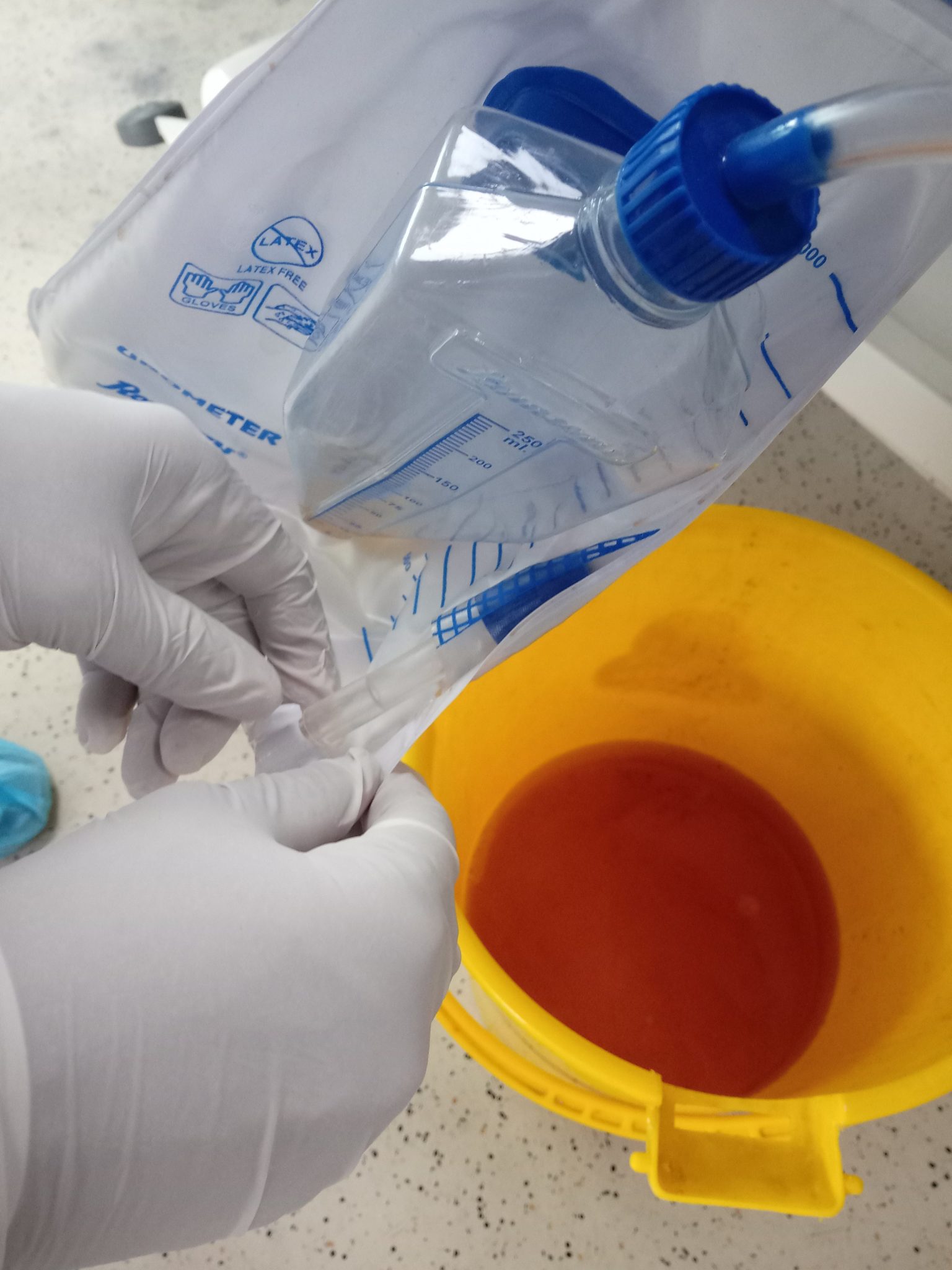 • Drain out the urine from the measured volume into the collection bag.